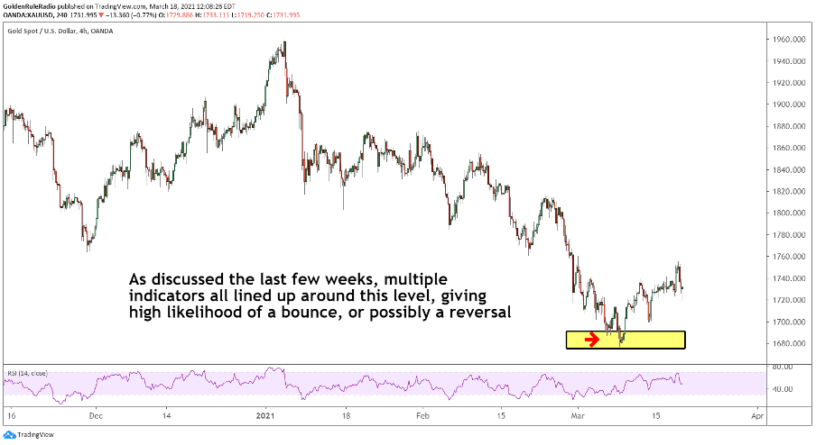 We cannot confirm if we hit the bottom until the price rises by $300 or $400. By then, investors will have missed the opportunity to purchase gold at such a discounted price. The point is: these are the entry points you are looking for.