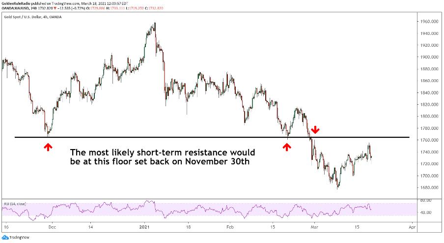 Gold is now approaching the resistance level of $1,765, which is the floor established back on November 30th (see chart below). We are interested to see if gold decides to push above that level or turn back around and continue its downward trend.