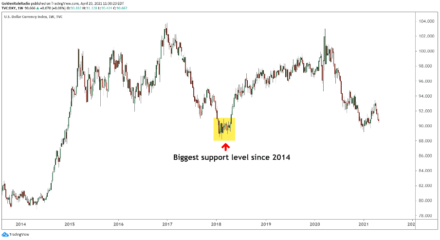 The index is now approaching the 89 range, which is a key support level dating back to early 2018. During the last downtrend, the dollar could not break through 89. We will be watching closely to see if the index bounces again or drops below 89 in the coming months. If we had to guess, mounting inflationary pressures in the U.S. economy will continue to rack the currency.