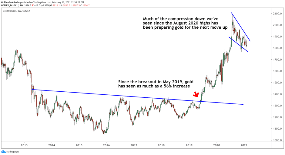 China also did not report gold purchases in 2020. Now that the gold price has softened by $300.00 off its all-time high, and oil prices are back up, we will likely see Russia continue their gold purchases. If central banks really do step back in and resume massive gold purchases, which can only mean one thing: the gold price is going higher.