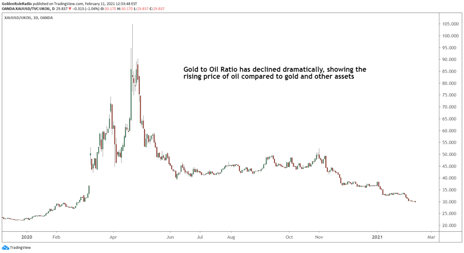 Below is a chart of the Gold to Oil ratio, which has declined dramatically since the price of oil went negative last summer. The point is: the higher the price of oil, the more you have to pay for gasoline. As the CPI and inflation climb, so will the demand for gold.